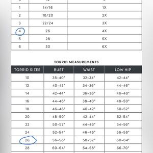 Please see the photo of Torrid size chart for the most accurate sizing.