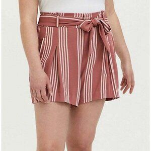 NEW Torrid Rose Striped Tie Front Shorts Pleats Paper Bag Waist High Rise 26