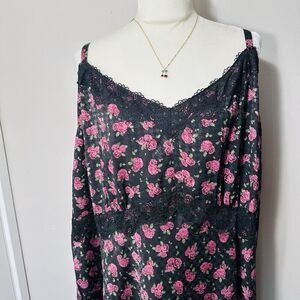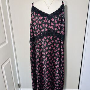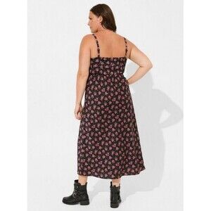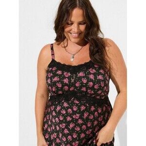 NEW Torrid Tea Length Challis Lace Trim Cami Long Sundress Size 4X Black Floral