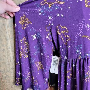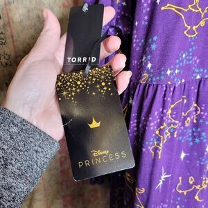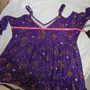 NWT Torrid Disney Princess Aladdin constellation galaxy cold shoulder super soft flowy purple shirt. Adjustable straps. Perfect to wear to Disney World! Rayon spandex.