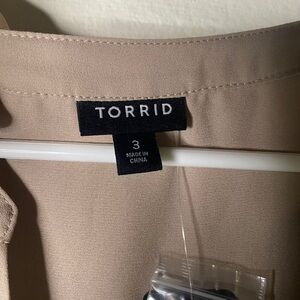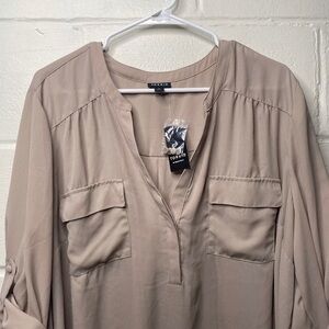 NEW Torrid size 3X Tan V Neck Tunic Top Roll Tab 3/4 Sleeve Lightweight Hi Lo