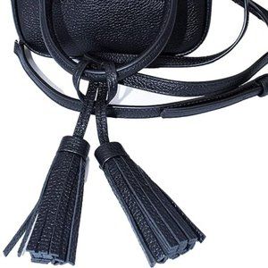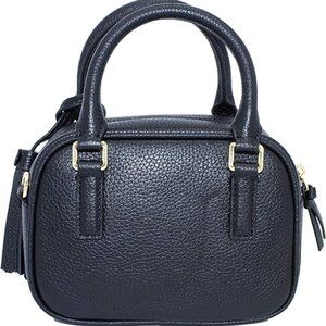 Accessorize in functional fashion with this pebbled leather satchel boasting trendy tassels and two carrying options for stylishly portable storage that adapts to your ever-changing needs.