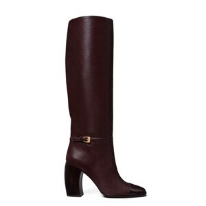 NEW Tory Burch Banana Heel Tall Leather Boots in Plum Sz. 5