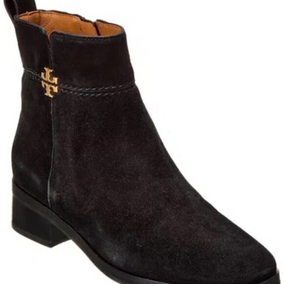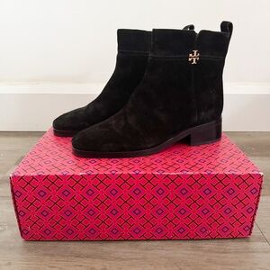 NEW Tory Burch Black Suede Gold Logo Everly Flat Boots 9.5