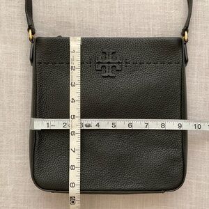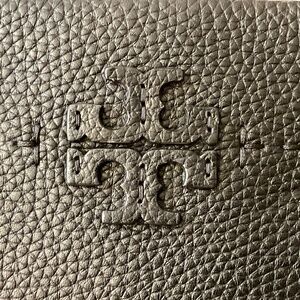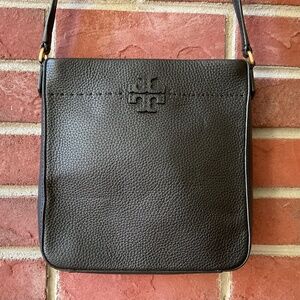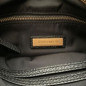 Tory Burch, beautiful black pebble genuine leather bag, top zip closure, gold hardware.Brand logo lining.Adjustable strap.