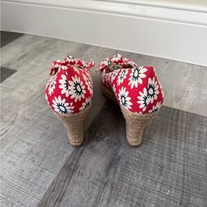 NEW Tory Burch Dory Red Floral Canvas Peep Toe Wedge Heels Size 8.5