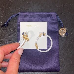 NEW Tory Burch Eleanor White Enamel and Gold Hoop Earrings with Dust Bag