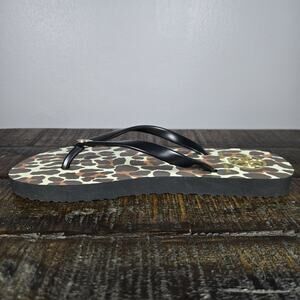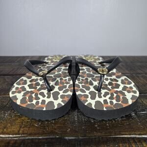 NEW Tory Burch Flat Flip Flops Womens Size 6 Sandals Thong Black Leopard Print