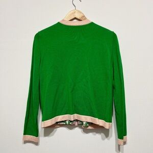 NEW Tory Burch Kendra Wool Knit Silk Court Green Garden Pink Pearl Cardigan M
