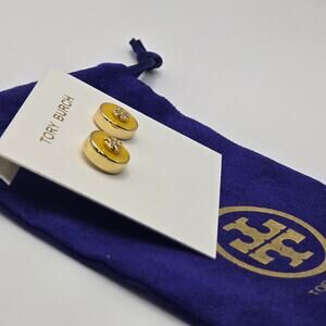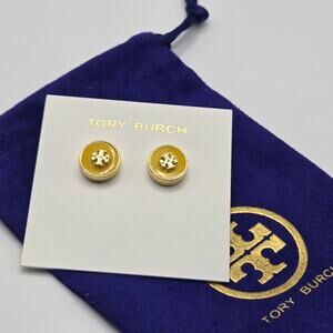 NEW Tory Burch Kira Enamel Circle Stud Earrings Yellow Gold Plated Small Simple