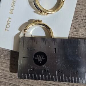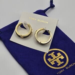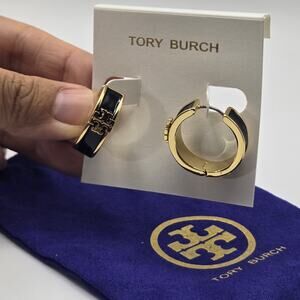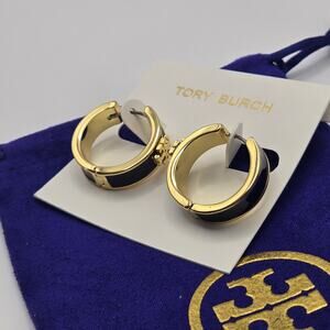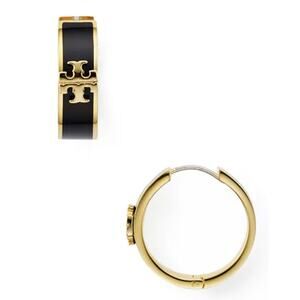 NEW Tory Burch Kira Huggie Hoop Earrings Enamel Black Gold Small Work Casual