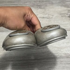 NEW Tory Burch Minnie Travel Ballet Flats 8 Silvery Pearl Light Grey