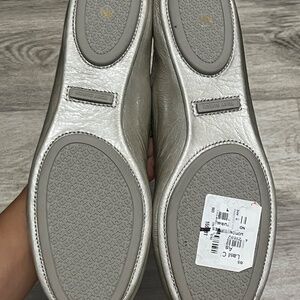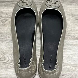 NEW Tory Burch Minnie Travel Ballet Flats 8 Silvery Pearl Light Grey. Unworn/unused. Pet-Free Home.