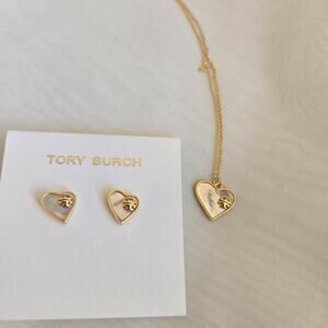 Tory Burch Mother of Pearl Heart Earrings and Necklace Set