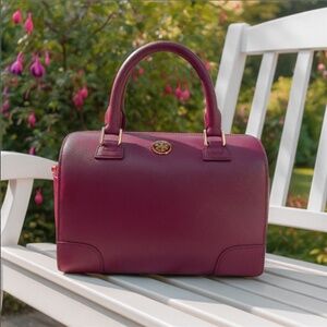 NEW Tory Burch Robinson Middy Raspberry Pink Saffiano Leather Satchel Bag