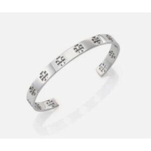 NEW! Tory Burch Silver Logo T Pierced Logo Cuff Bracelet