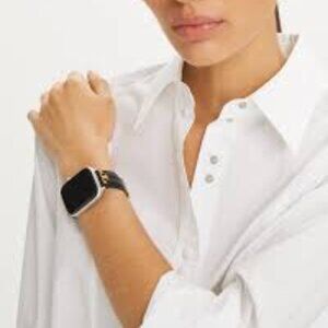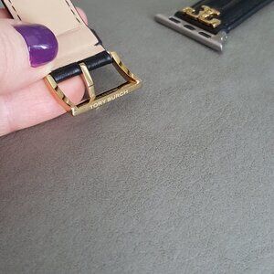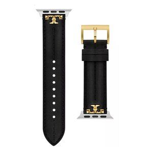 NEW Tory Burch The Kira Black Leather Strap Band For Apple Watch 11 42 Gold