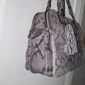 NEW Tory Burch Thea snake print 3 zip compartment purse bag satchel gray leather