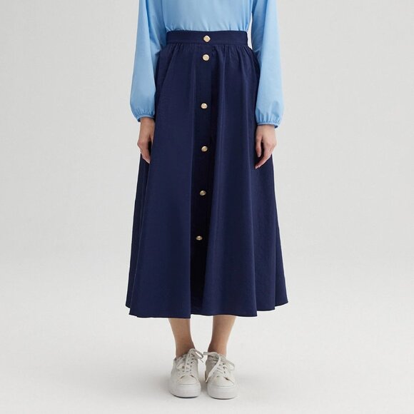 NEW Touché Privé Gold Buttoned Cupra A-line Skirt Dark Blue P5170
