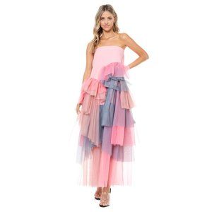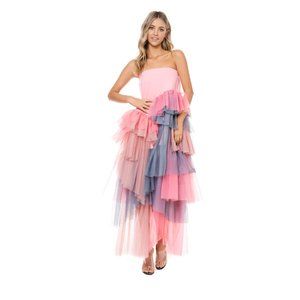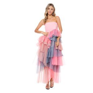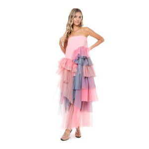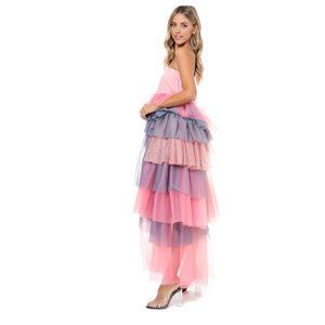 NEW Tov Holy Pink Tiered Tulle Maxi Skirt Dress S M L XL MSRP $262