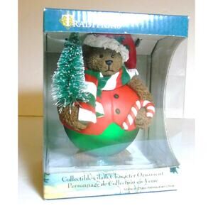 NEW Traditions Blown Glass Character CHRISTMAS BEAR ORNAMENT Tree Candy Cane BOX