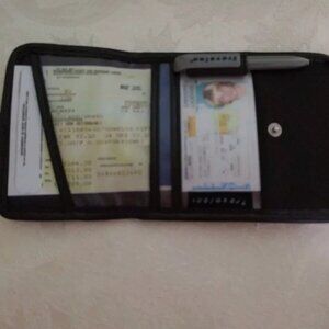 SUPER NICE Women's Travelon brand Dark Brown 100% Leather Small Anti-Theft Crossbody Organizer Bag Purse with Original Wallet, Beige & Red 100% Nylon Lining, Attached Adjustable Crossbody Shoulder Strap, Zip Around Closure, Silver Hardware, Outside Pockets and Inside Organizer with Lots of Pockets.