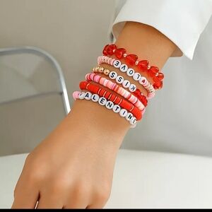 NEW! Trendy Valentine’s Bracelet Set – 6 Pieces with Heart Beads