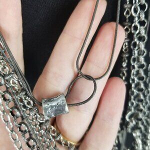 NEW Treska Silver Multistrand Long Chain Statement Necklace Bracelet Earring Set