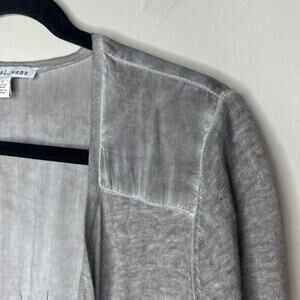 NEW Tribal Jeans Small Gray Linen Blend Open Front Waterfall Cardigan 3/4 Sleeve