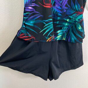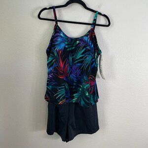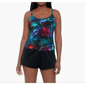 NEW Trimshaper Womens 16 Tankini Swimsuit Farrah Scoopneck Swim Romper Pockets