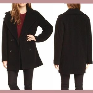 NEW Trina Turk [ 14 ] Wool Blend Double Breasted Pea Coat in BLACKโ