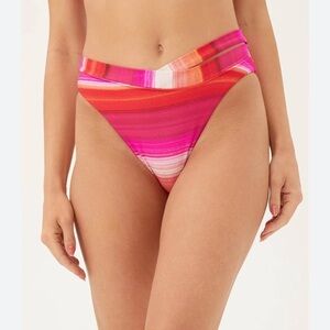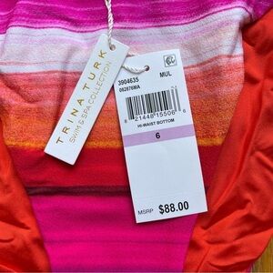NEW Trina Turk Cut Out High Waist Bikini Bottom Pink Stripe 3904635 Size 6 NWT