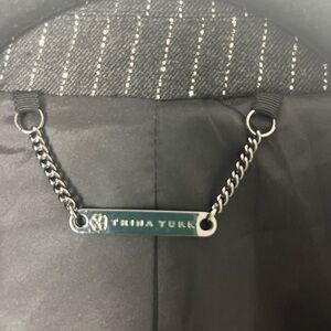 NEW Trina Turk Dark Gray Pinstripe 2-Button Single Breasted Blazer Classic Sz 12