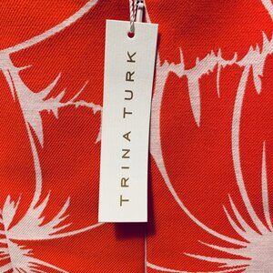 NEW Trina Turk Dress Pompoms Floral Coral Red White Lined Women’s 2 Pleasant NWT