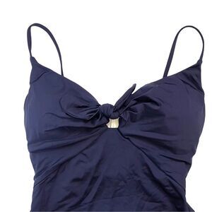 NEW Trina Turk Getaway High Leg Maillot Bow One Piece swimsuit Sz 6 navy