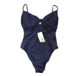 NEW Trina Turk Getaway High Leg Maillot Bow One Piece swimsuit Sz 6 navy blue