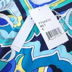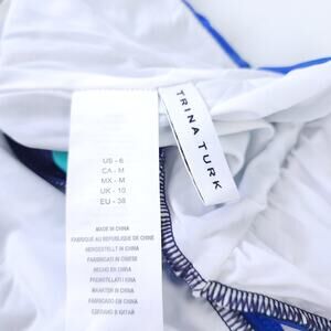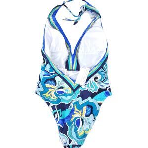 NEW Trina Turk Ipanema Plunge Geometric Print One Piece Swimsuit Size 6 Blue