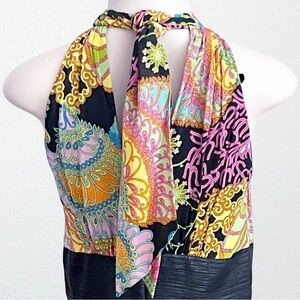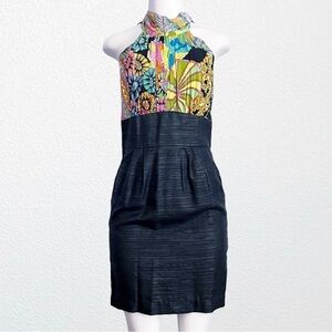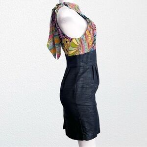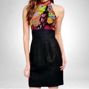 NEW Trina Turk It’s a Vibe Silk Mini Halter Wiggle Dress Black Multi SZ 6