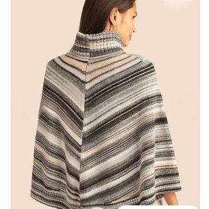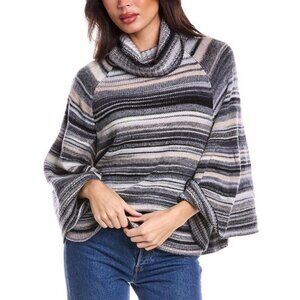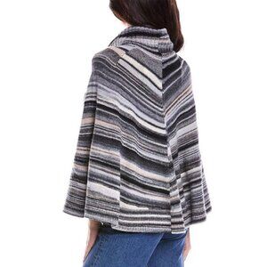 Wool-blend sweater with cape-style sleeves and turtleneck finished with a space-dye style stripe.