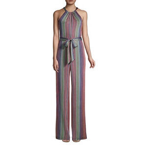 NEW Trina Turk Striped Jumpsuit Belted Sleeveless Halter Style Size Medium
