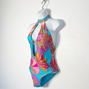 NEW Trina Turk Swim Hi-Neck Open Back One Piece Retro Swimsuit