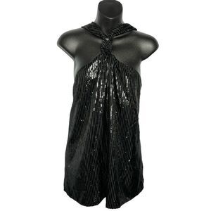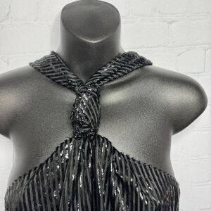 Trina Turk black striped shiny knotted cutout halter top size large NEW