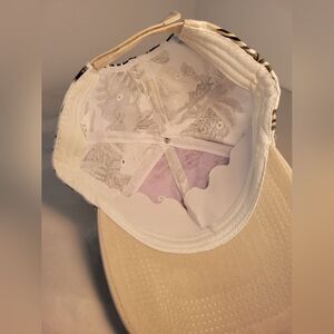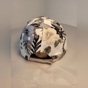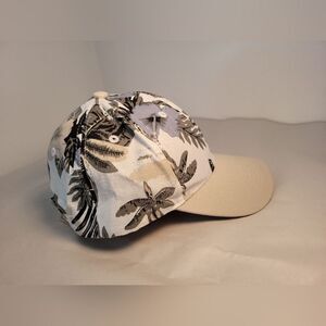 New never worn baseball hat with a lovely tropical botanical palm tree print. Adjustable back cinch. 100% cotton.