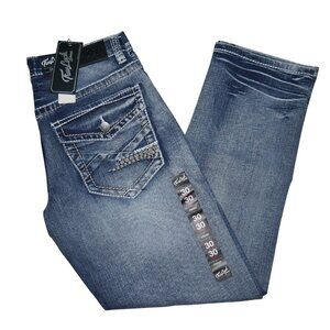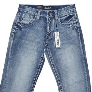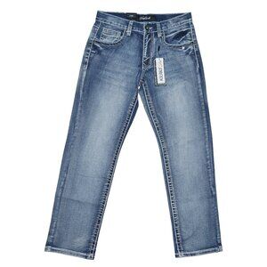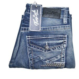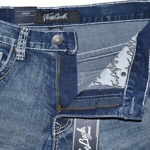 NEW True Luck Dark Wash Jeans Men's Size 30x30 Thick Stitch Straight Leg BKE