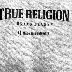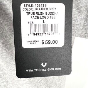 NEW True Religion Buddha Face Logo Short Sleeve Heather Grey T-shirt Size Large