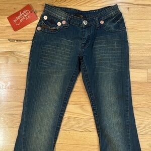 NEW True Religion Joey Super T Jeans SIZE 26 flare leg. Has tags. Pocket button holes are stitched shut.