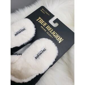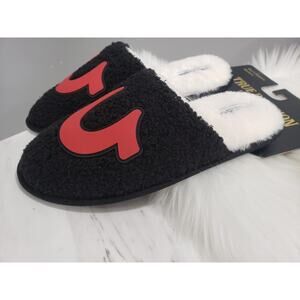 NEW True Religion Men's Slippers Sz 9-10 Medium Black Red Horseshoe House Shoe