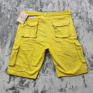 NEW True Religion Shorts Mens 42 Yellow Belted Cargo Cotton Embroidered Logo