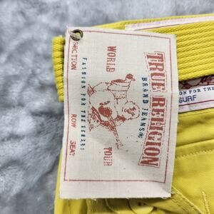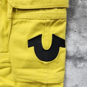 NEW True Religion Shorts Mens 42 Yellow Belted Cargo Cotton Embroidered Logo Streetwear Casual Preppy Skater