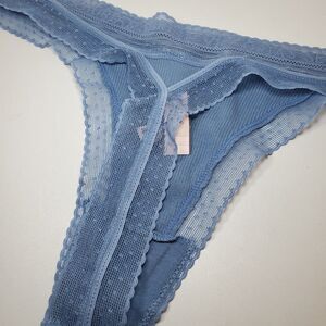 NEW True Vintage 90s Victoria Secret Blue Low Rise Sz XL Thong Sexy Sheer Trim